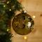 The ornament features a green glass body with a gold leaf pattern, creating a harmonious blend of earthy tones and subtle shimmer. Ideal for enhancing trees, garlands, or wreaths.