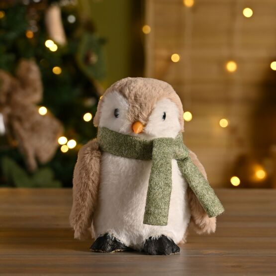 The Natural Colour Fabric Penguin with Green Mossy Scarf 14 x 13 x 18cm offers a playful addition to seasonal decor.
