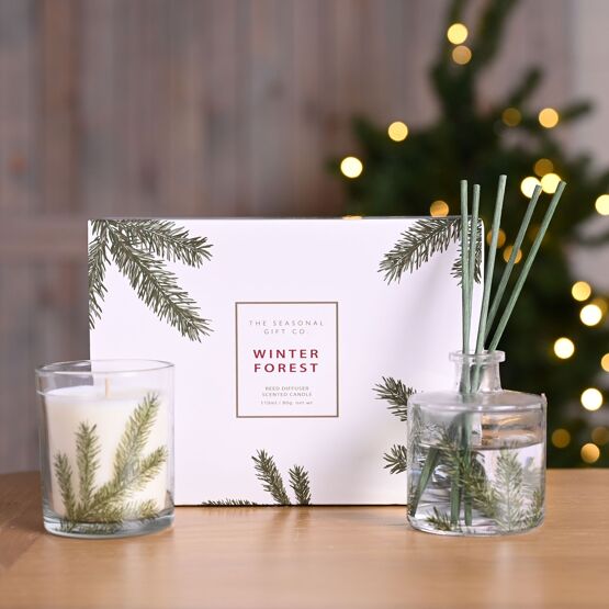 The Pine Pattern 100g Candle and 110ml Diffuser Gift Set brings festive fragrance and style to your home.