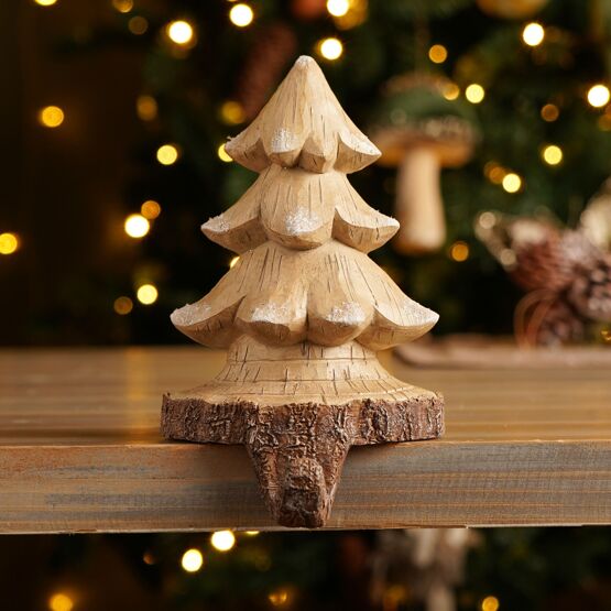 The Resin Christmas Tree Shaped Stocking Holder offers a refined way to display festive stockings.