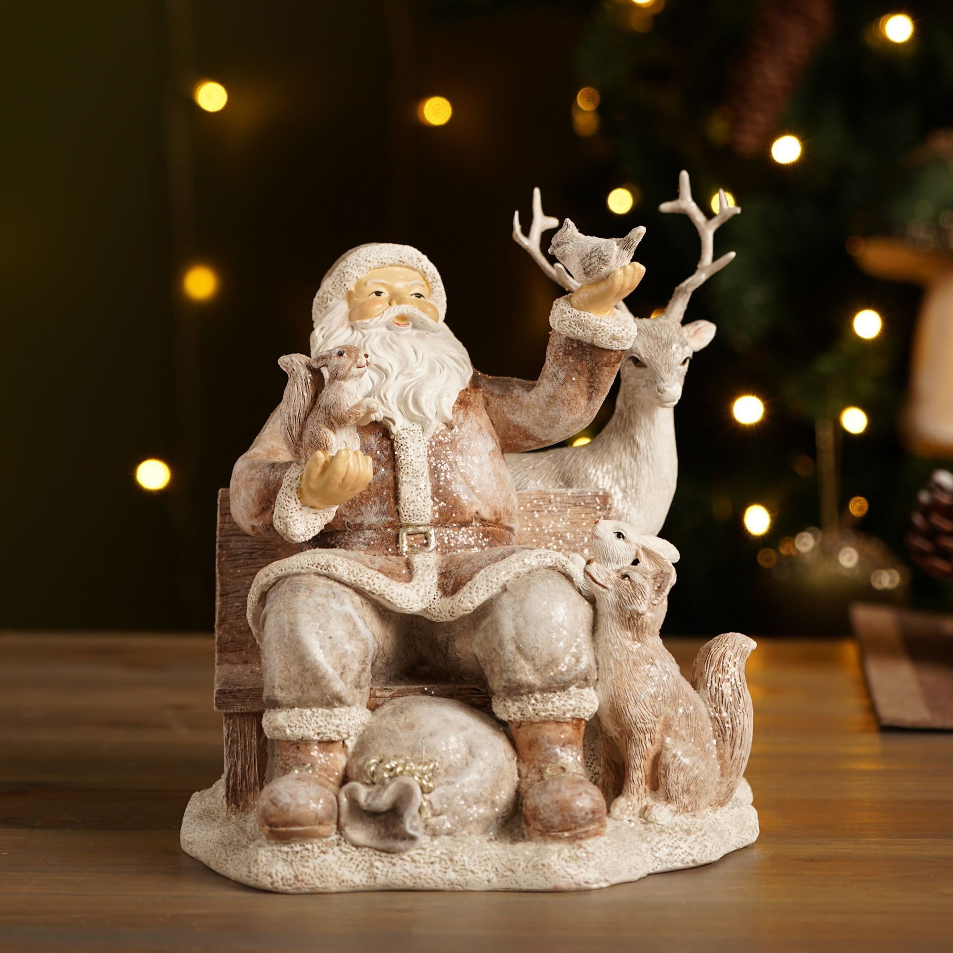 Resin Natural Effect Santa and Wildlife with Glitter Sparkle Figurine - 19cm
