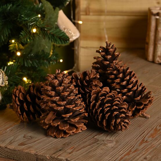 The Set of 6 Natural Pinecones in Net Bag offers a natural accent for seasonal decorating.
