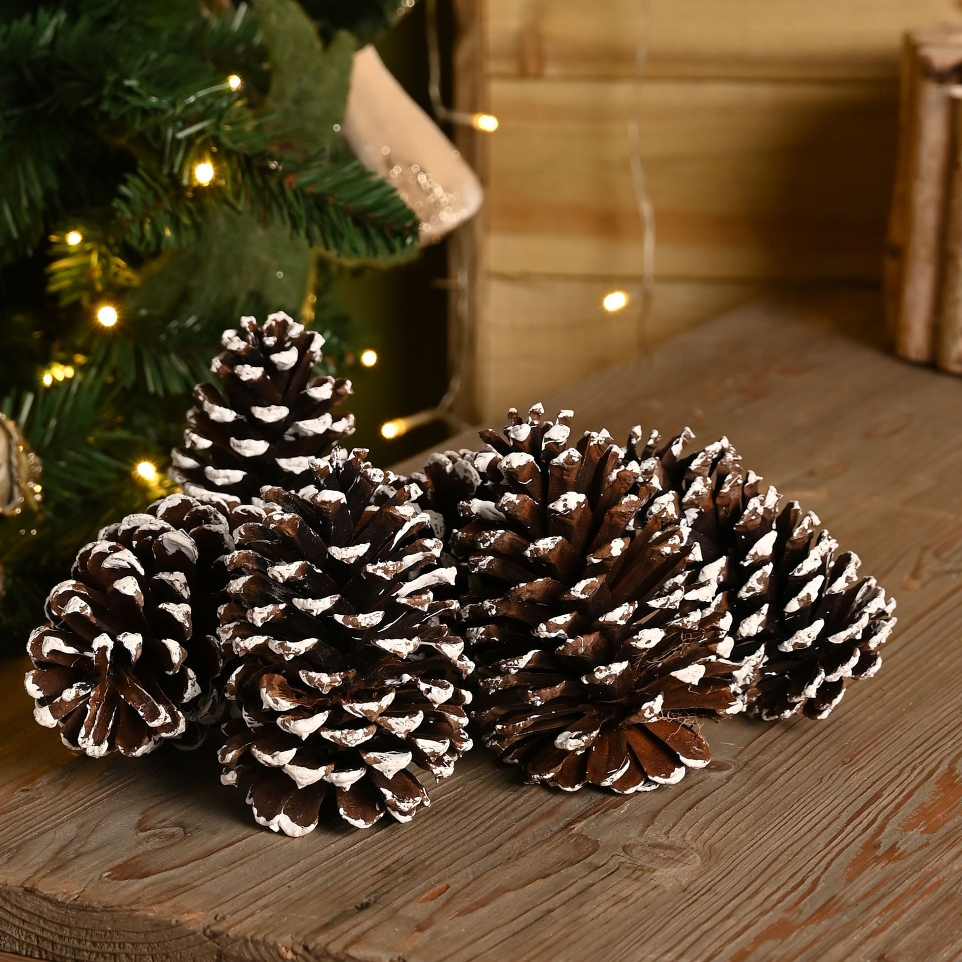 Set of 6 Snow-Effect Pinecones in Net Bag