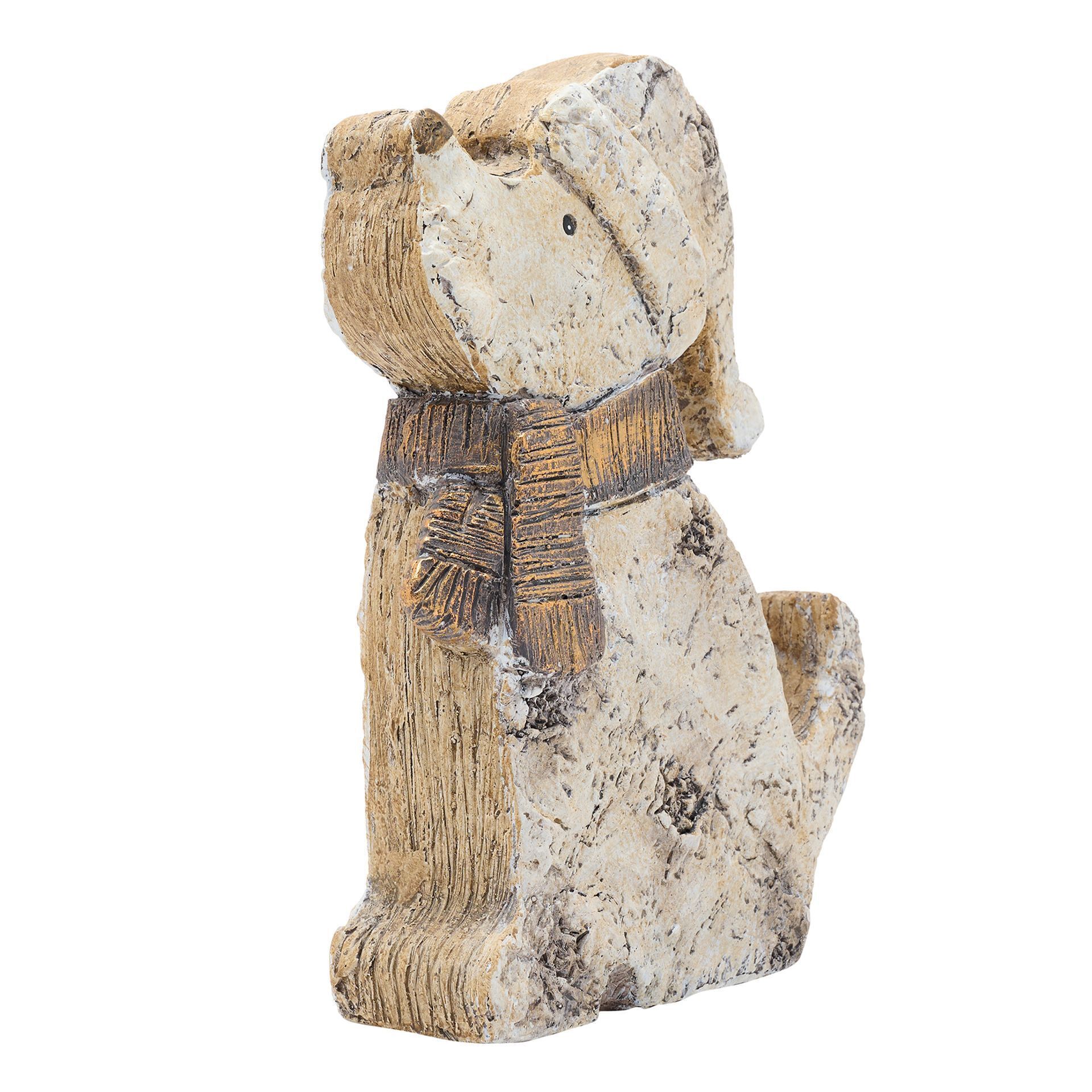 Bring some heartwarming charm to your stores with this delightful Wood Effect Dog in Hat & Scarf. Crafted from durable resin with careful attention to detail, this sweet item captures the playful spirit of man's best friend. Topped with a jaunty scarf and hat for added character, this little pup looks ready to greet you at the door after a long day. Place it on a console table or bookshelf to add a touch of whimsy to any room. An ideal gift for dog lovers at Christmas time.