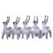 A group of five silver reindeer figurines stand in a row, each crafted from acrylic with subtle illumination. The set's clean lines and understated shimmer evoke a sense of modern elegance.