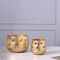 The gold metal candle holders – one small, one large - showcase a metallic effect, complete with textured design and cut out stars. They are designed to hold candles which will illuminate homes when lit on Winter evenings.