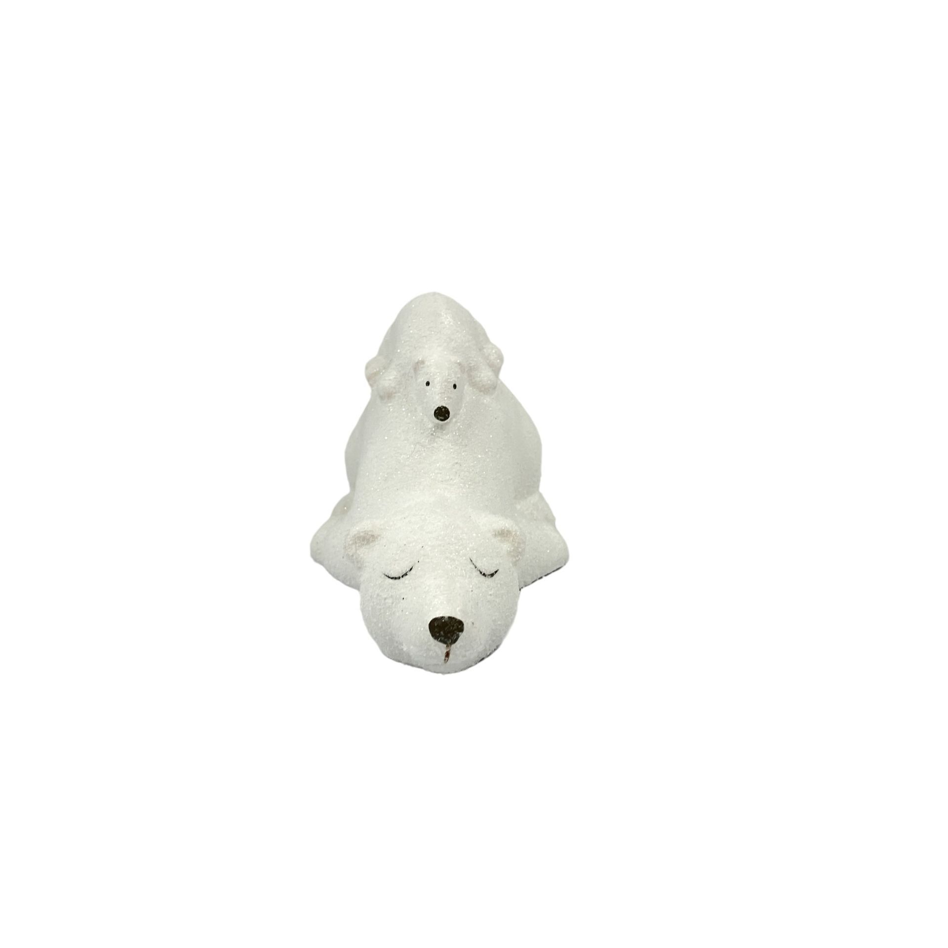 Ceramic Snow Covered Polar Bear and Cub Lying Down 14cm