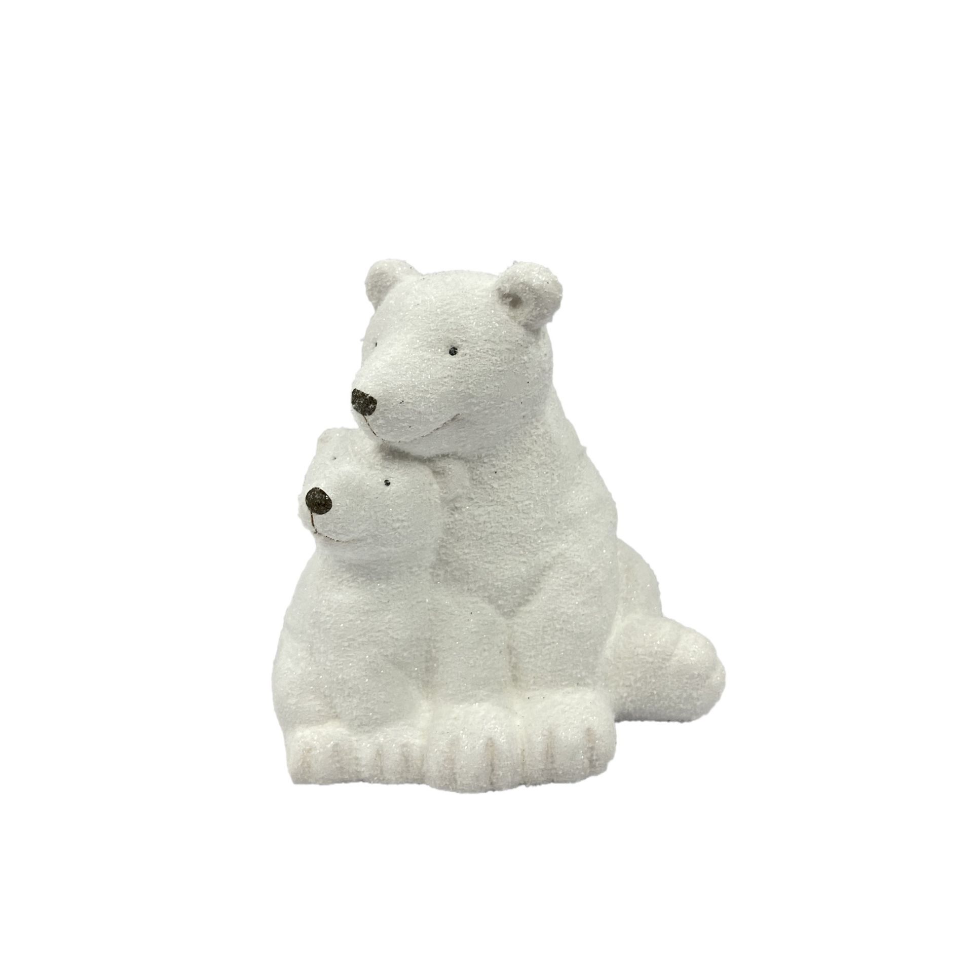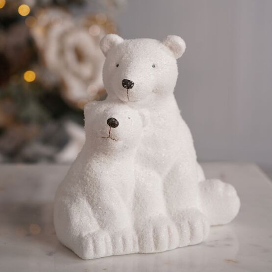 Ceramic Snow Covered Polar Bear and Cub Ornament 15cm