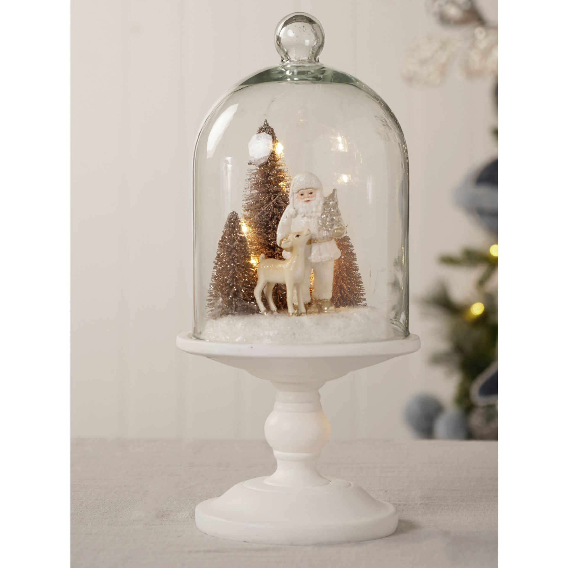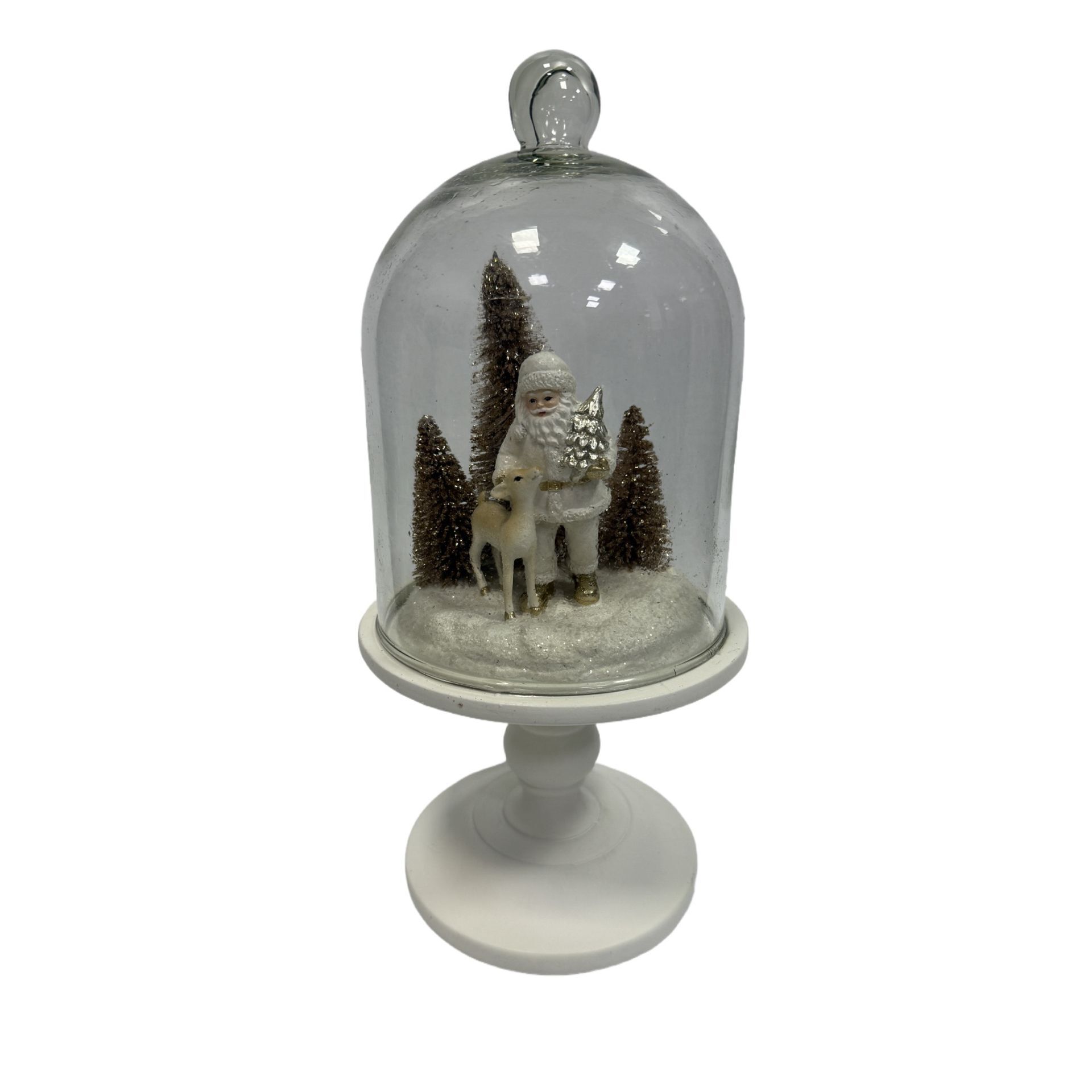 LED Glass Cloche Ornament - Santa, Deer & Bottle Brush Christmas Tree 29.8cm