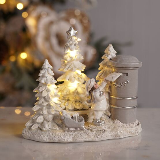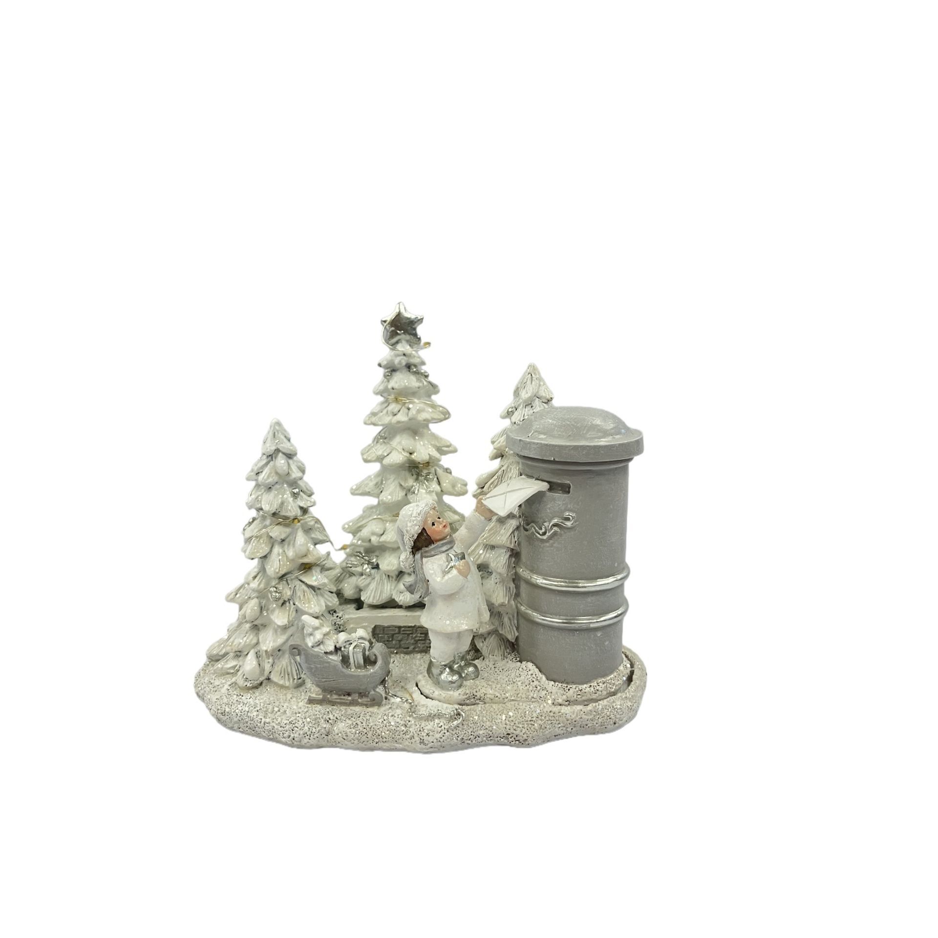 LED Resin Silver Sparkle Boy Posting Letter to Santa Figurine 16cm (includes Batteries)