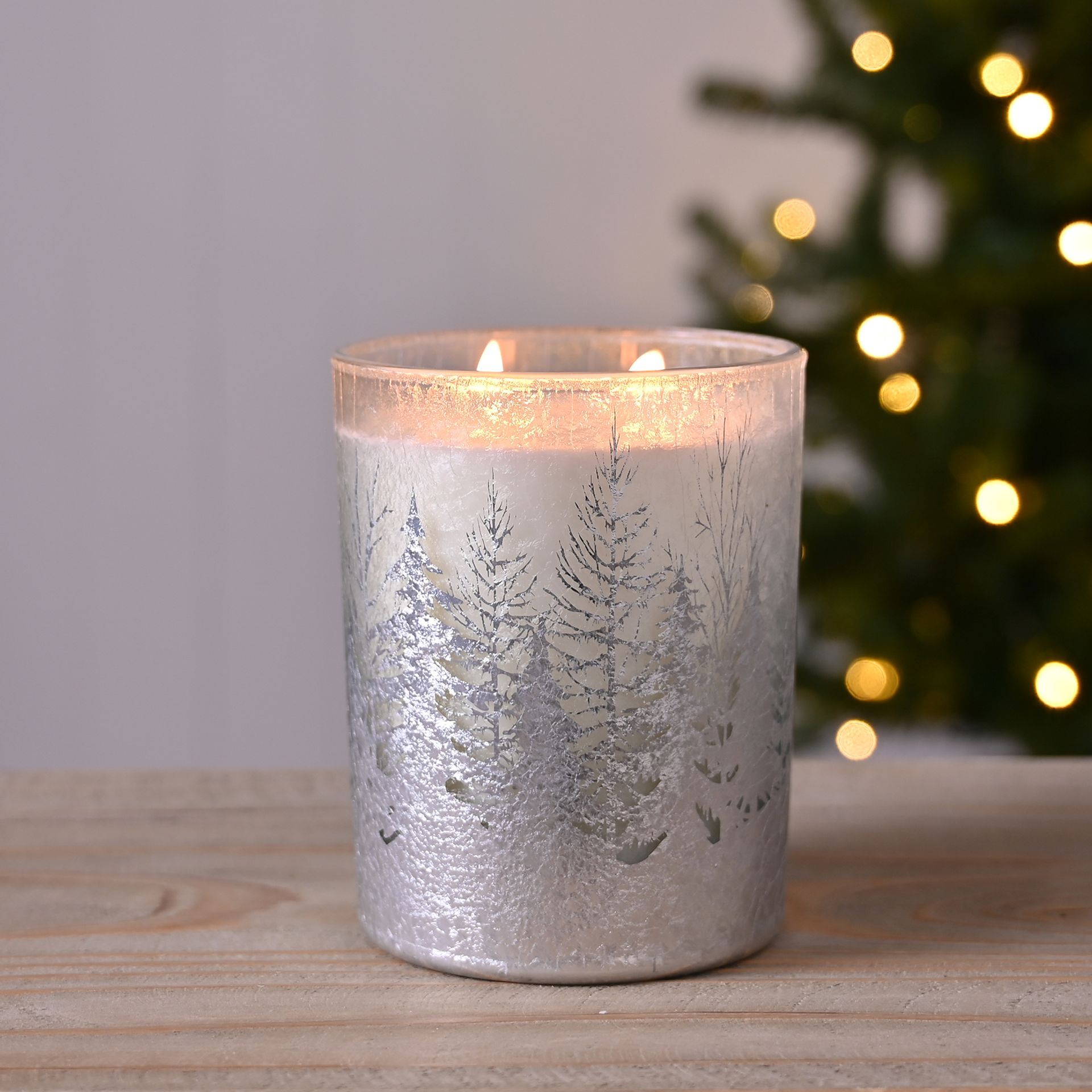 The Medium Filled Candle - Silver Forest offers a refined accent for seasonal interiors, inspired by the comforting spirit of Gingerbread Lane.
