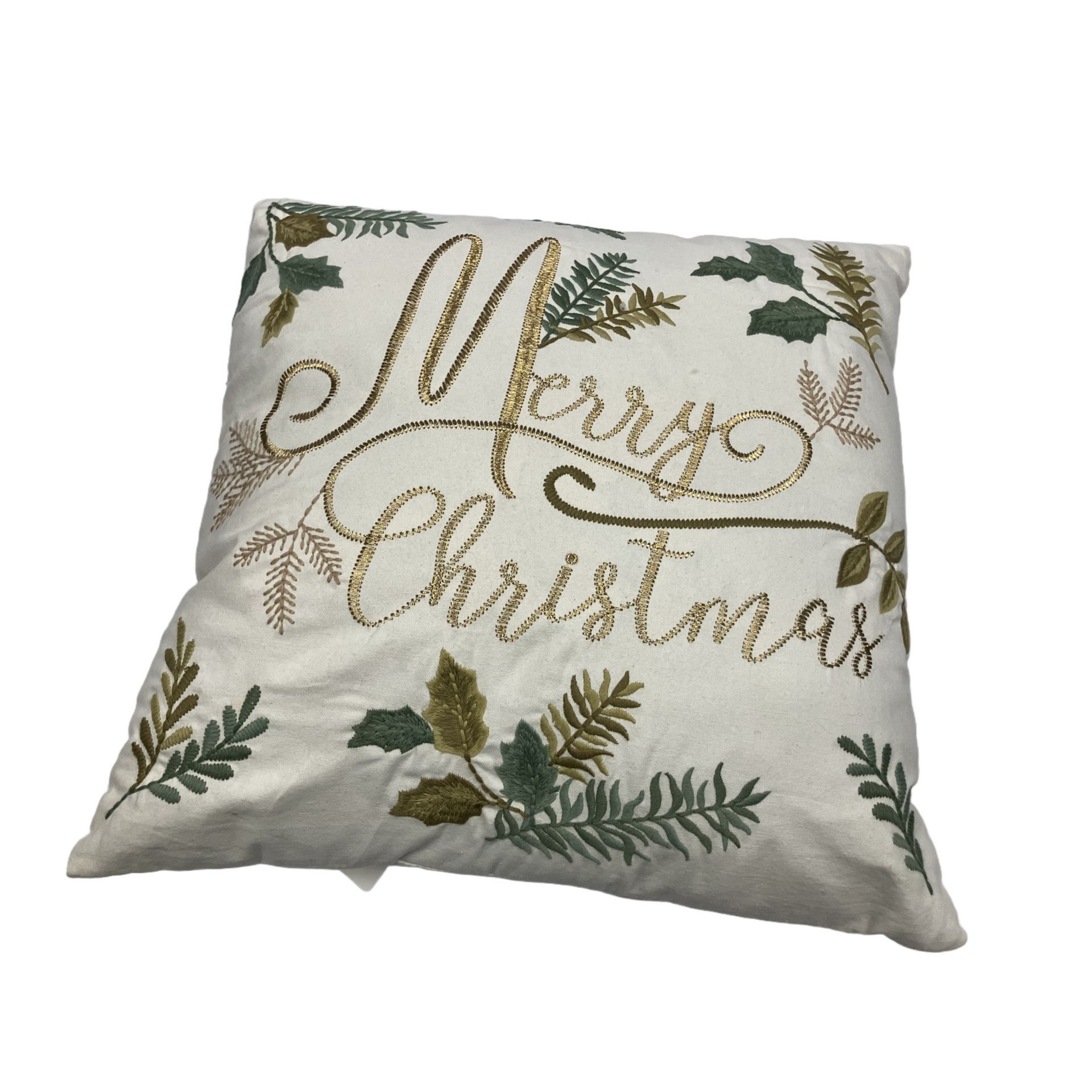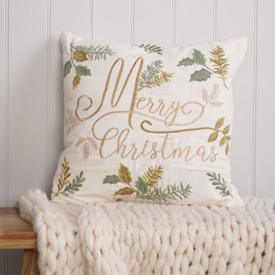 Merry Christmas Cushion Cotton Canvas 220gsm with Gold Thread Embroidery PP Filling 45cm