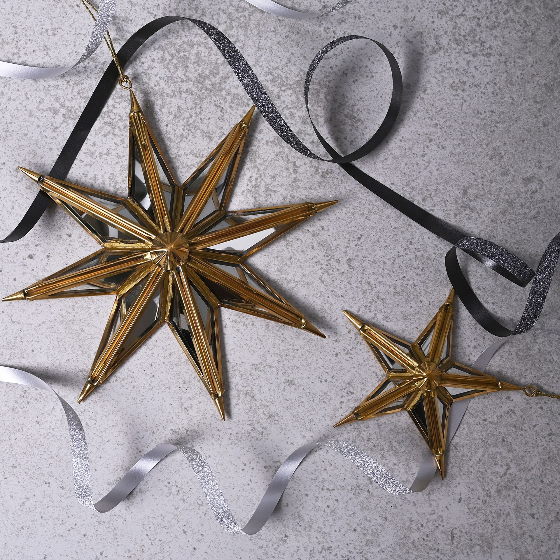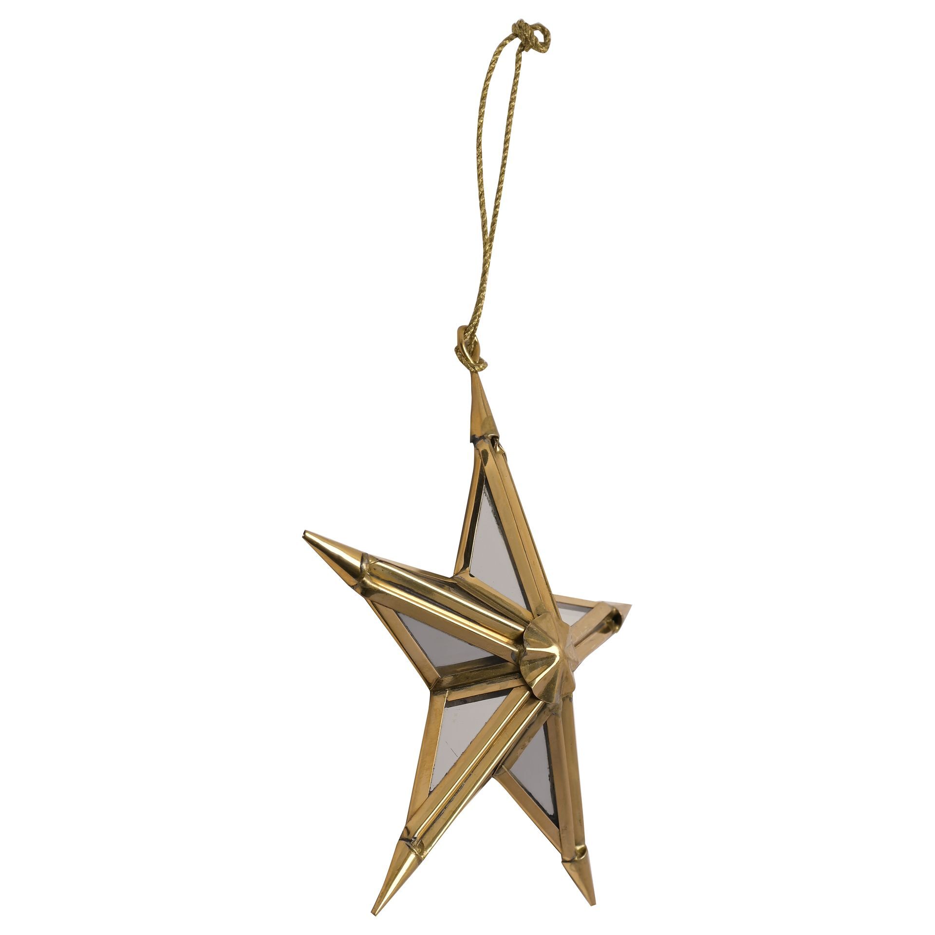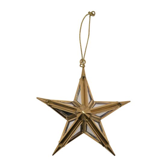 A gold mirror star tree decoration by THE SEASONAL GIFT CO®. This gorgeous decoration will stand out amongst the branches on the Christmas tree. The shiny gold metal decoration showcases a vivid star design, complete with shiny finish and mirrored glass segments. It hangs from the tree using its gold thread hanger. The decoration is packaged in a corrugated inner and master.