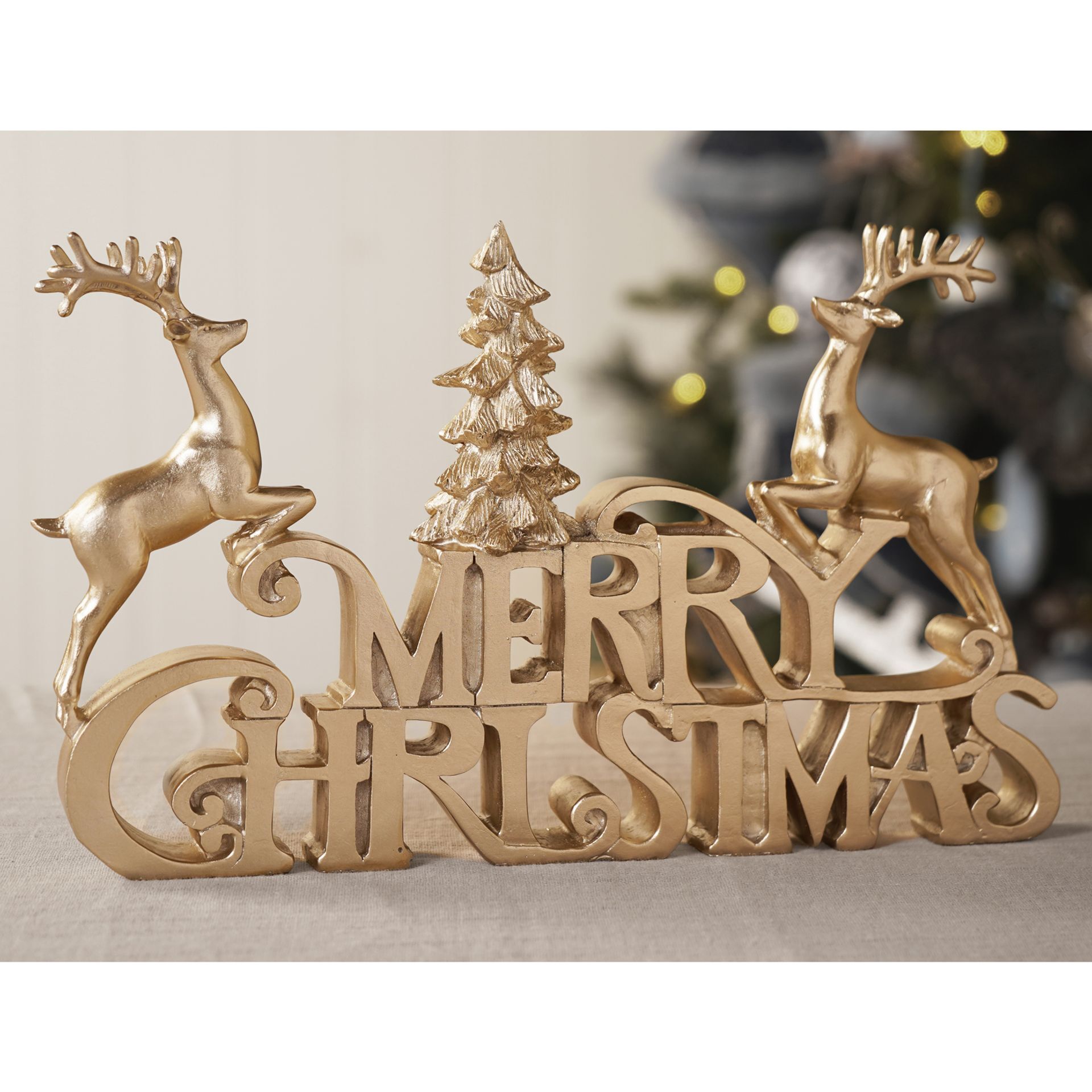 Shop Resin Gold Metallic "Merry Christmas" Ornament 31cm Wholesale Online UK