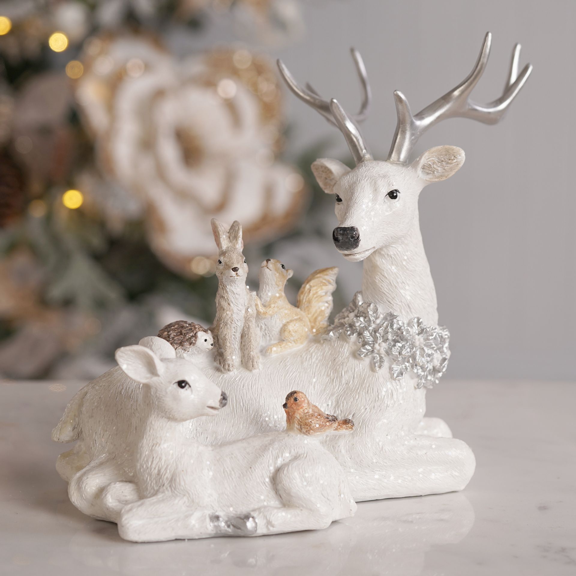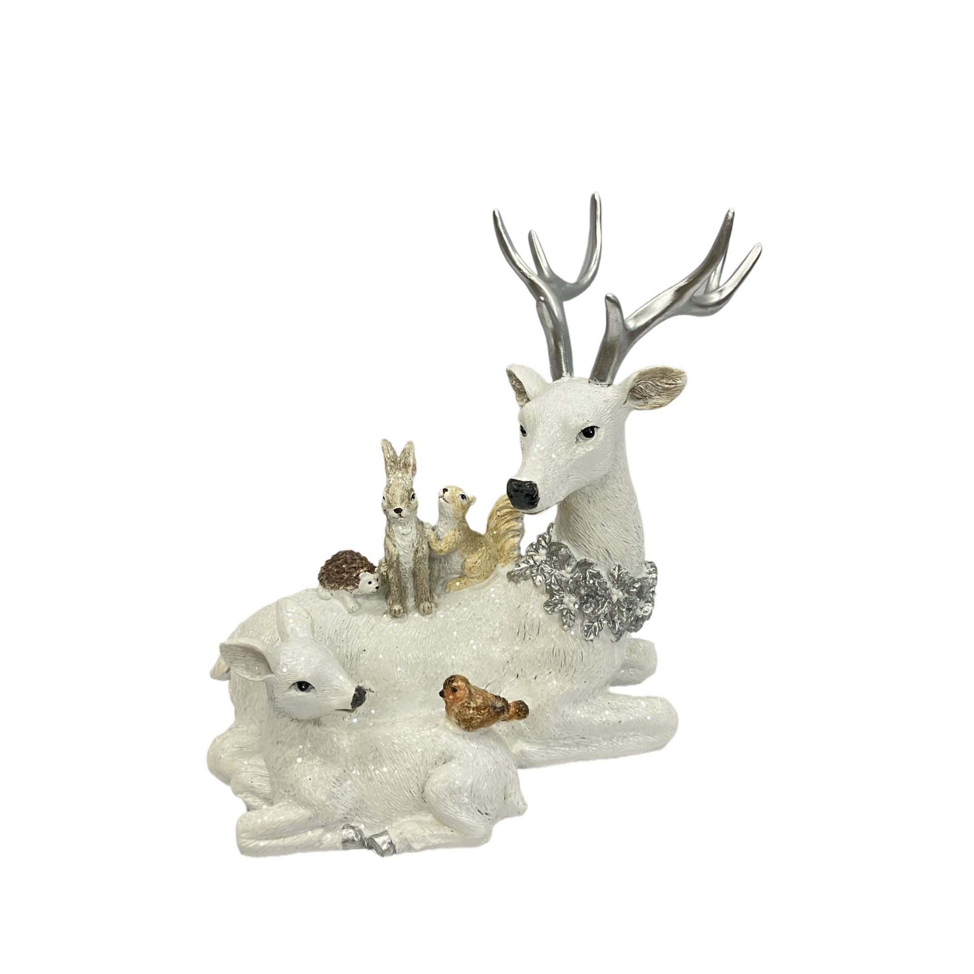 Resin Silver Sparkle Animals On A Reindeer Figurine - 20cm