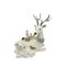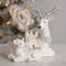 A white deer with large antlers stands in a snowy landscape, surrounded by various small animals such as rabbits, squirrels, and birds. Subtle silver accents and a gentle sparkle finish lend a sense of winter calm to the scene.