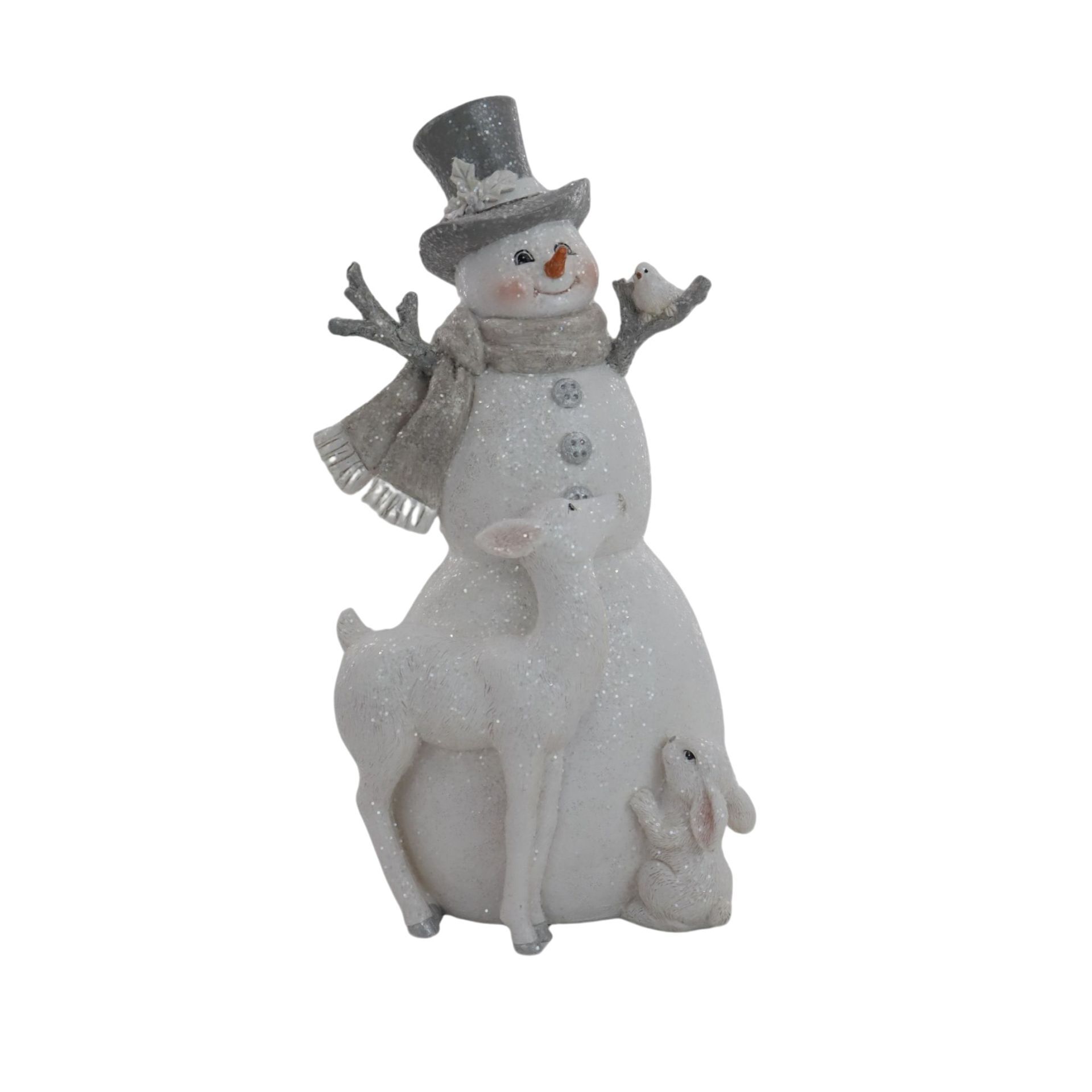 Resin Silver Sparkl;e Snowman with Animals - 30cm