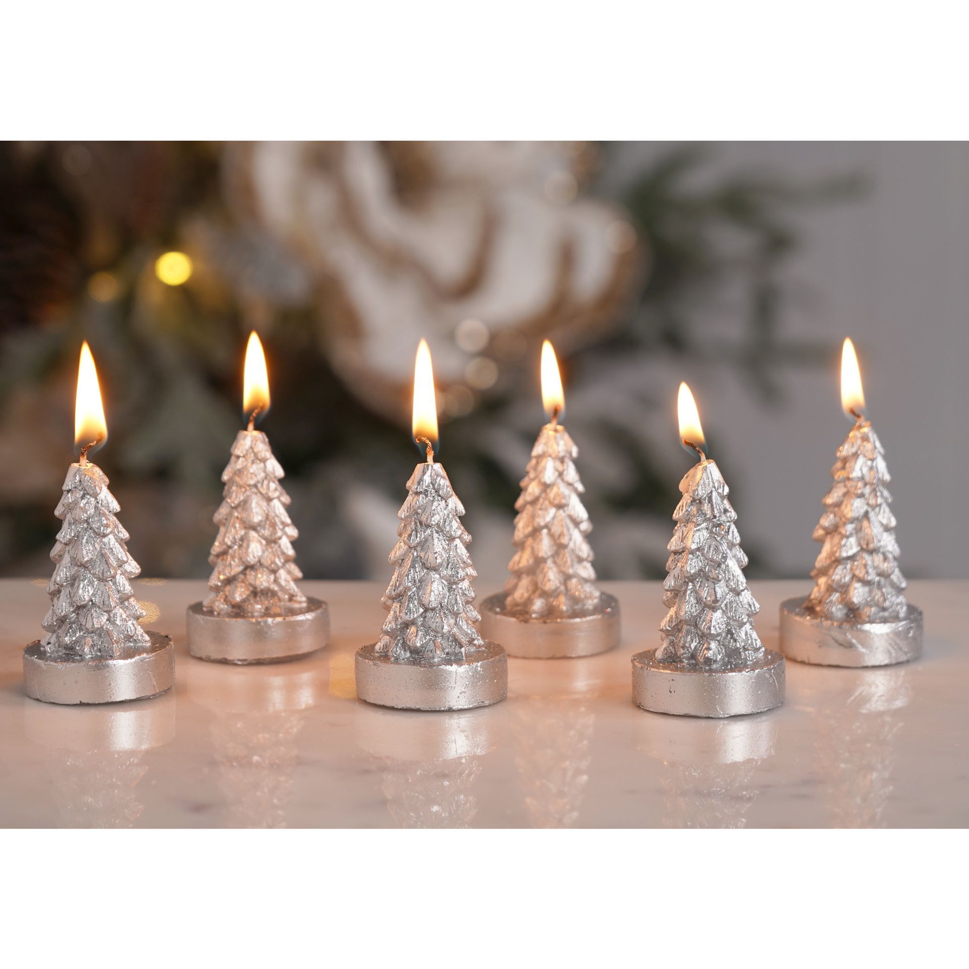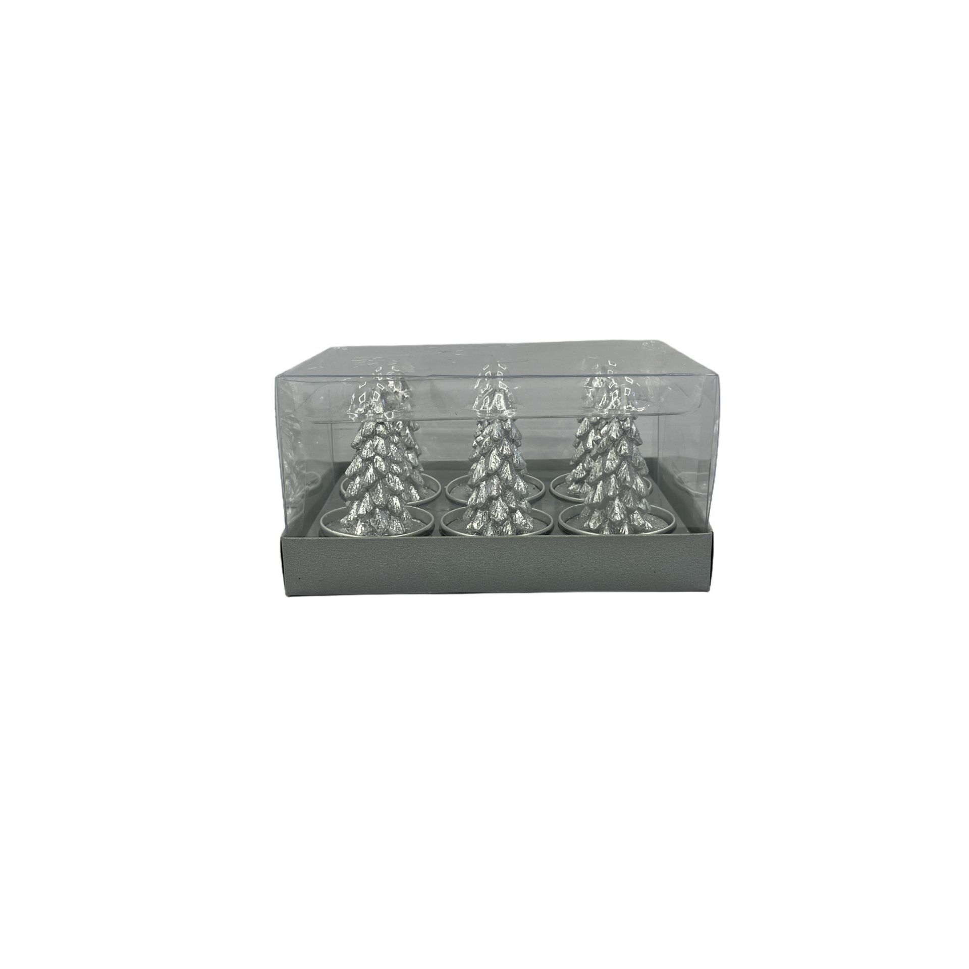 Set of 6 Silver Sparkle Christmas Tree Tealight Candles in Gift Box