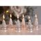 Each tealight features a miniature Christmas tree form, finished in silver tones with a gentle sparkle that catches the light. The crisp design and cool palette establish a contemporary, understated presence.