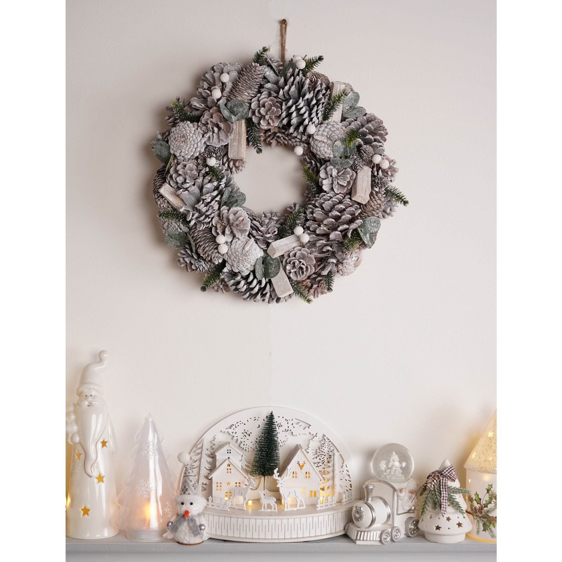 The Silver Sparkle Natural Christmas Wreath in Brown Showbox 38cm offers an elegant centrepiece for seasonal interiors.