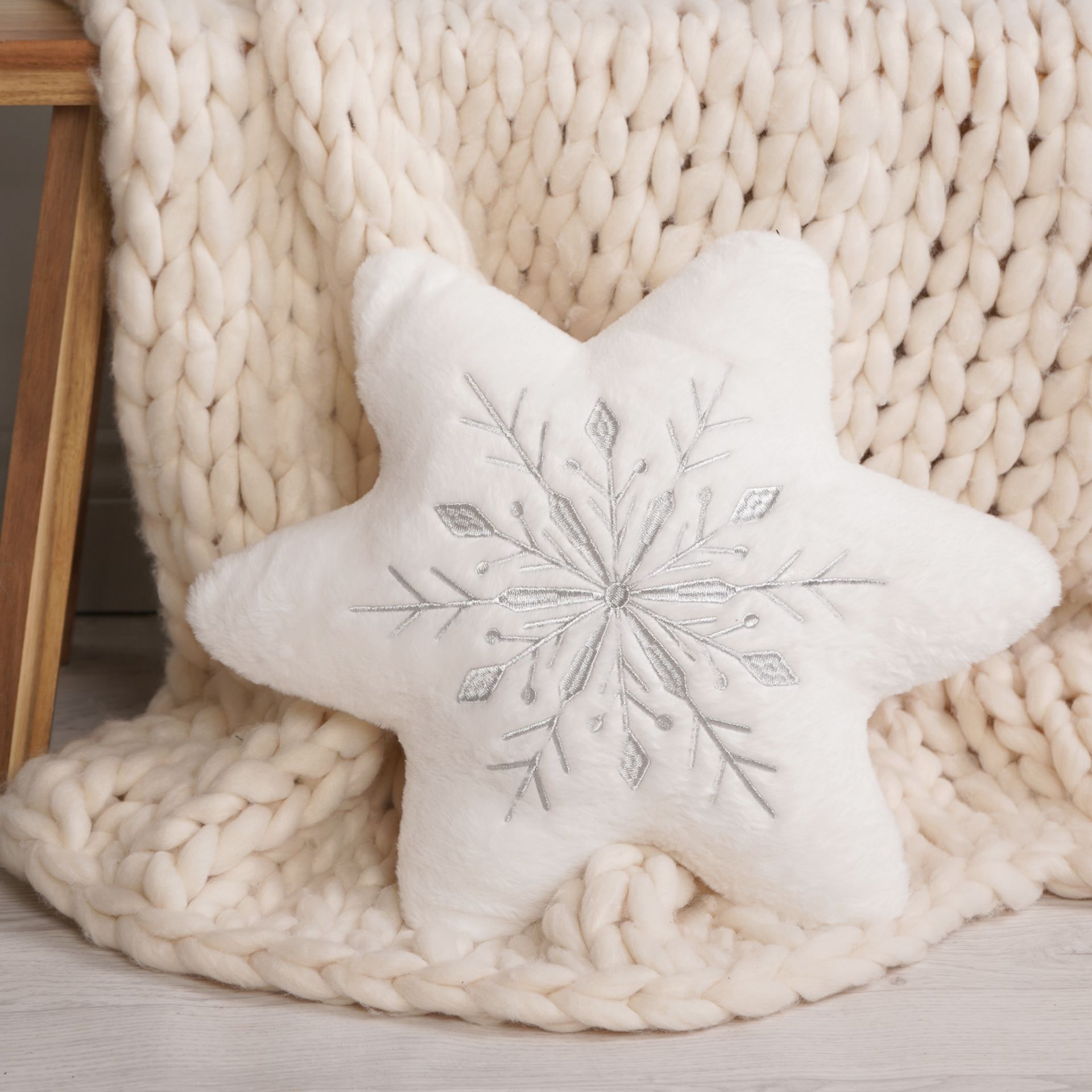 Snowflake Cushion with Silver Embroidery 43cm x 43cm