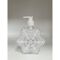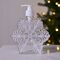 A clear soap dispenser with an intricate snowflake-like pattern etched onto its surface, filled with softly scented vanilla soap for a gentle festive touch. The transparent finish highlights the delicate design, creating a subtle wintry charm.