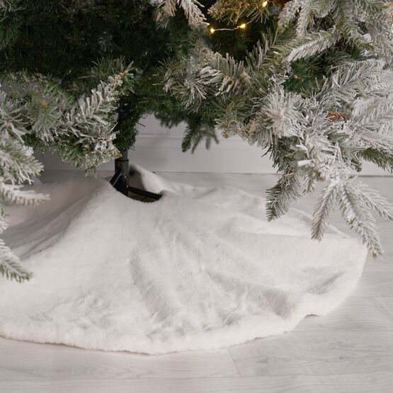 Circular opening in the centre, this skirt is finished in plush white faux fur, offering a gentle, wintry texture that complements both traditional and contemporary interiors.