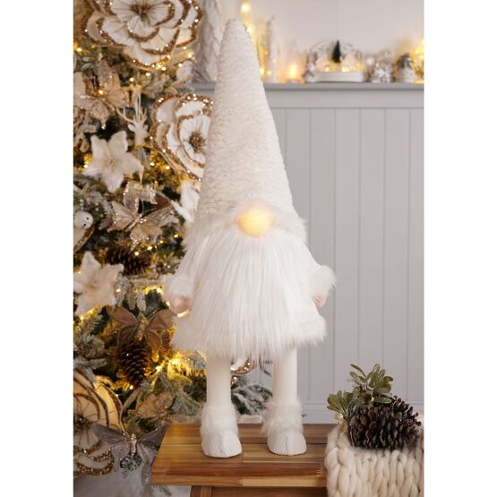 The White Plush and Fabric Gonk Standing with Light Up Nose 88cm offers a charming, contemporary accent for festive interiors.