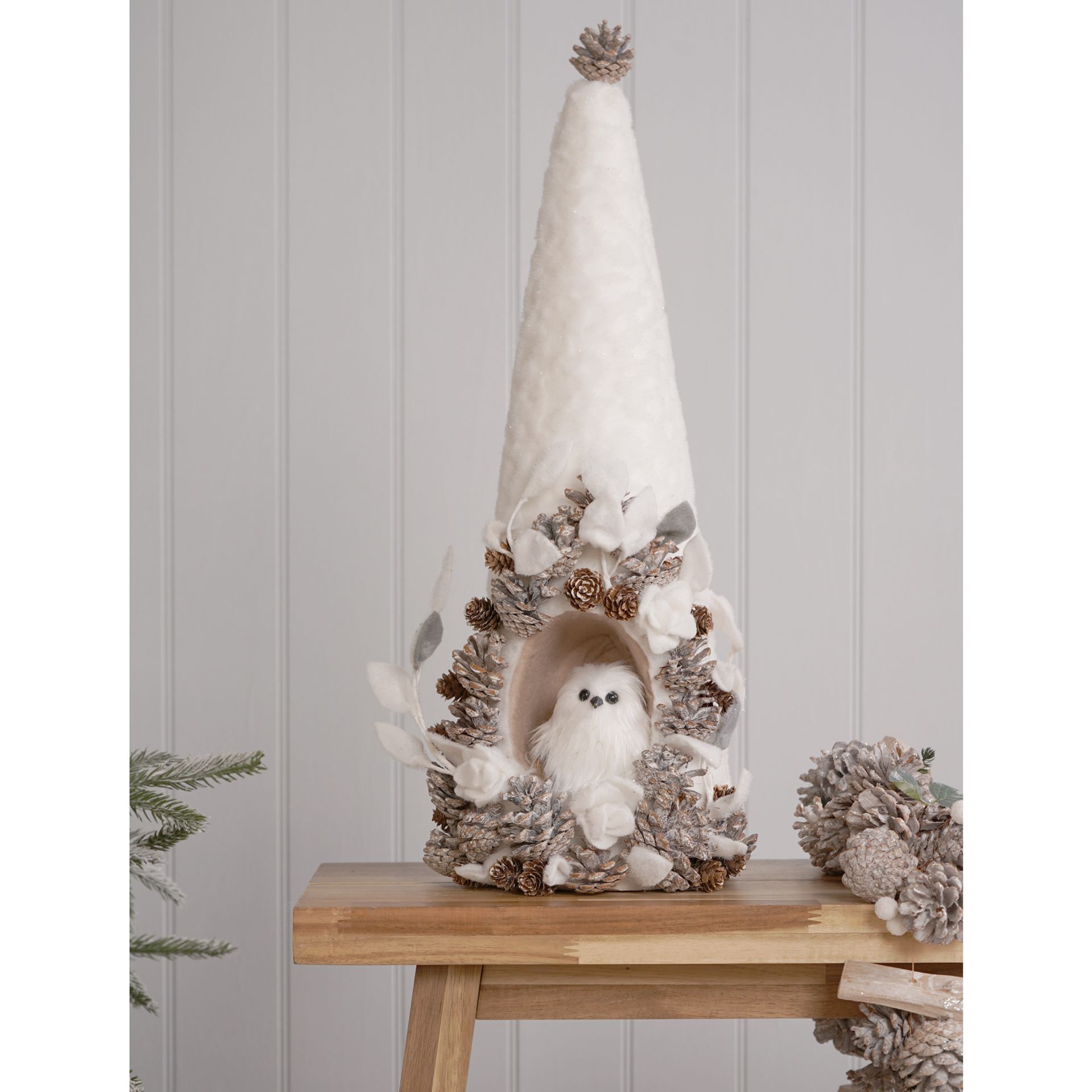 The White Snowy Cone Tree with Elf Home and Pine Cones 56 x 27 x 20cm creates a refined focal point for seasonal interiors.
