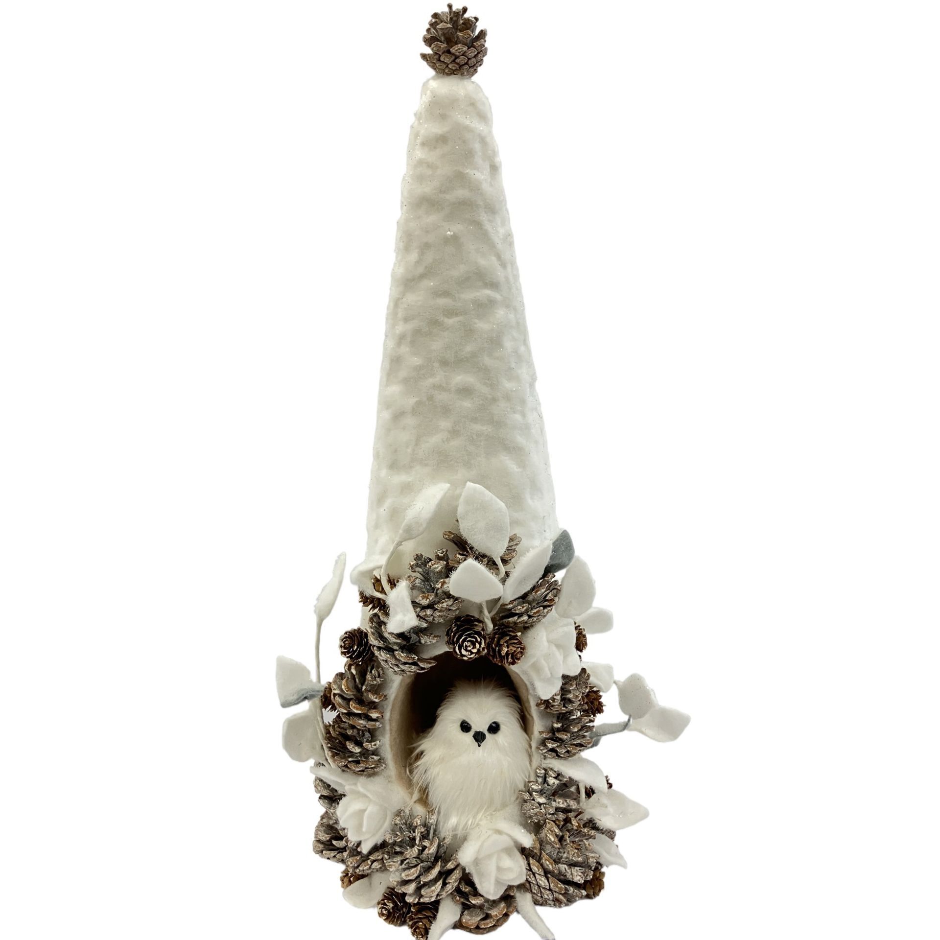 White Snowy Cone Tree with Elf Home and Pine Cones 27 x 20 x 58cm
