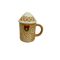 A gingerbread-style ceramic mug with a domed lid, decorated with intricate patterns captures the charm of home baked Christmas treats. The smooth glazed finish and whimsical detailing make it a standout mug for sipping from.