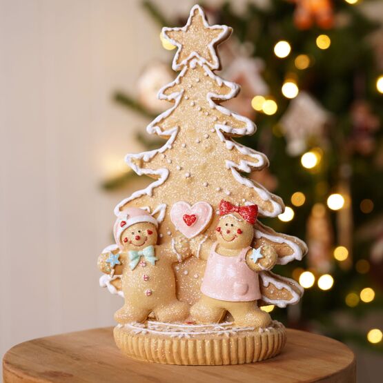 The Gingerbread Tree and Men Figurine 20cm is a sweet ornament for festive home decor, inspired by the warmth of seasonal baking.