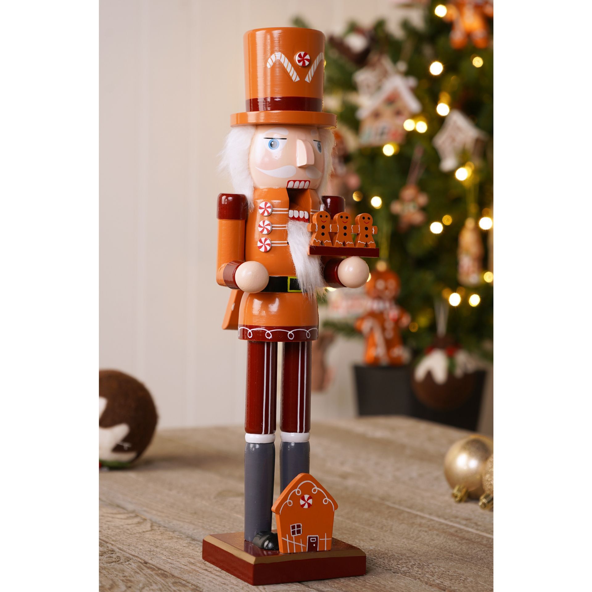 The Gingerbread Wooden Nutcracker 38cm brings a playful twist to classic Christmas decor.