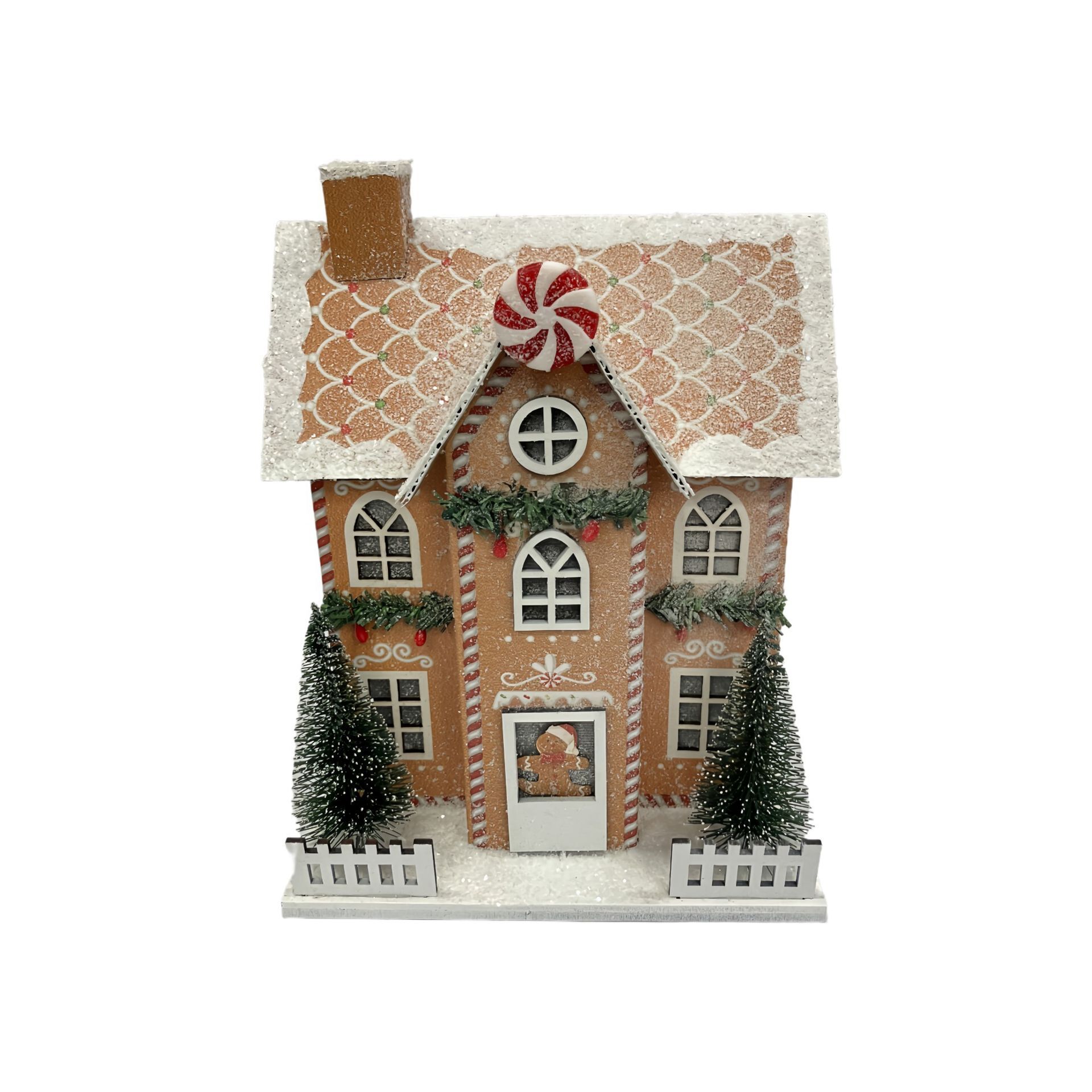 The Large Paper Gingerbread House with LED Light is a festive decoration designed to capture the spirit of Christmas.