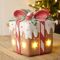 A Christmas gift box design, finished with a vibrant red bow, candy cane stripes, and snowflake motifs, captures the playful spirit of seasonal baking. The gentle illumination adds a warm, inviting glow to any display.