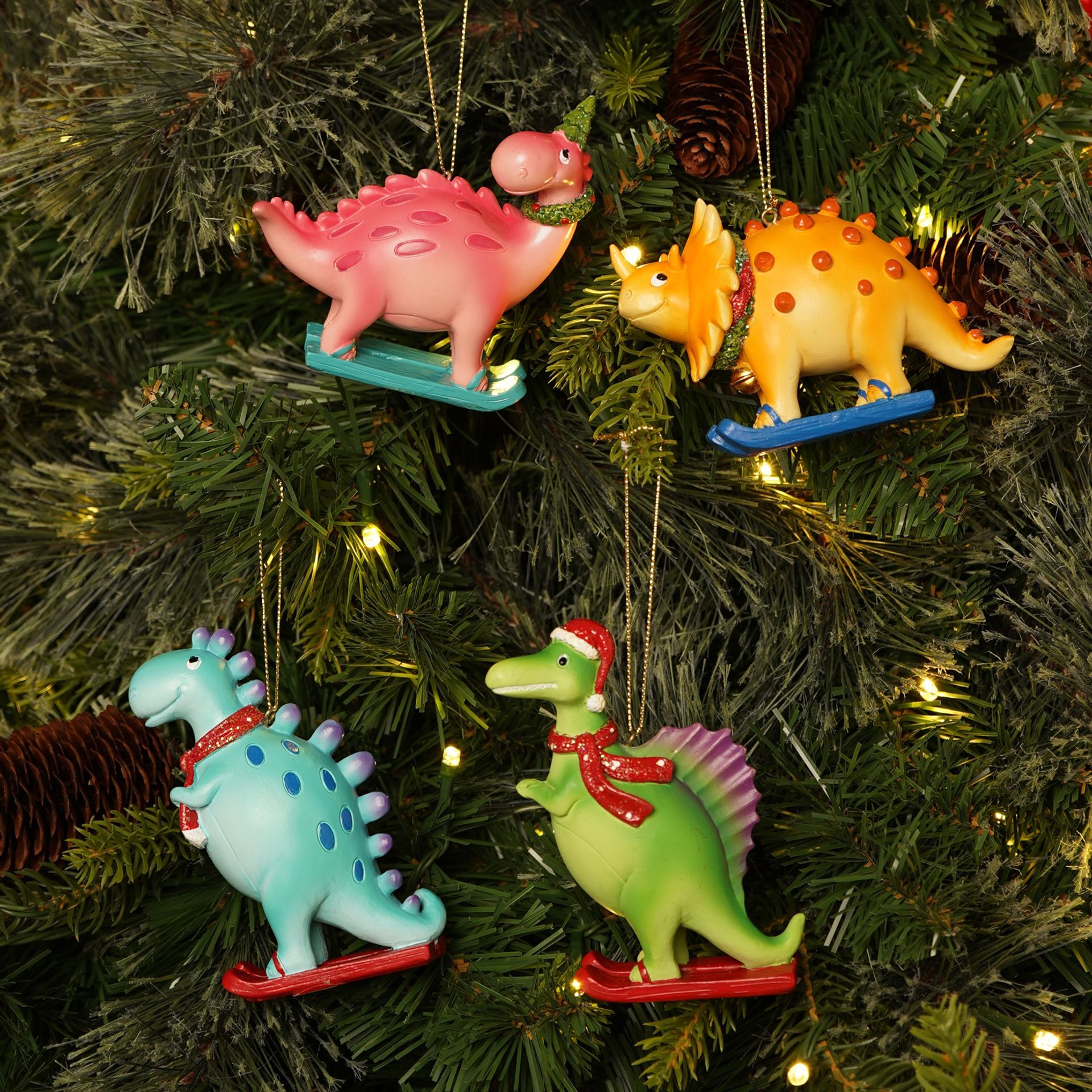 The ASTD MULTI 4 Dinosaur Hanging Decoration introduces a playful twist to festive decor with a quartet of charming dinosaur ornaments. Four colourful dinosaur-shaped decorations, each with a unique design and colour scheme, create a lively and whimsical display. Crafted with attention to detail, these decorations bring a sense of fun and character to the Christmas tree. Pair with other bold and cheerful designs from the North Pole Novelties range.
