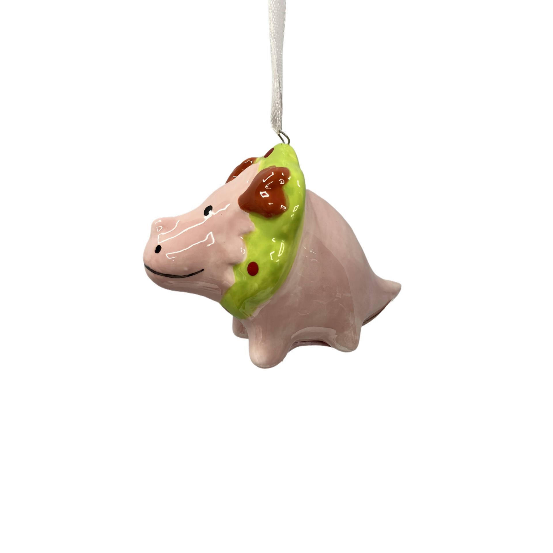 The Pink Dinosaur Hanging Decoration introduces a playful twist to traditional Christmas decor. A whimsical ceramic dinosaur ornament with a glossy pink body and green accents brings a sense of fun and character to the tree. Its smooth finish and cheerful palette make it a standout piece for modern festive styling. Complete the look with more playful picks from the North Pole Novelties collection.