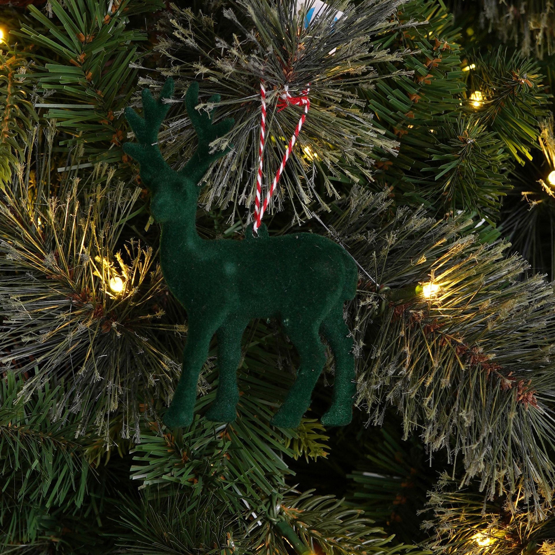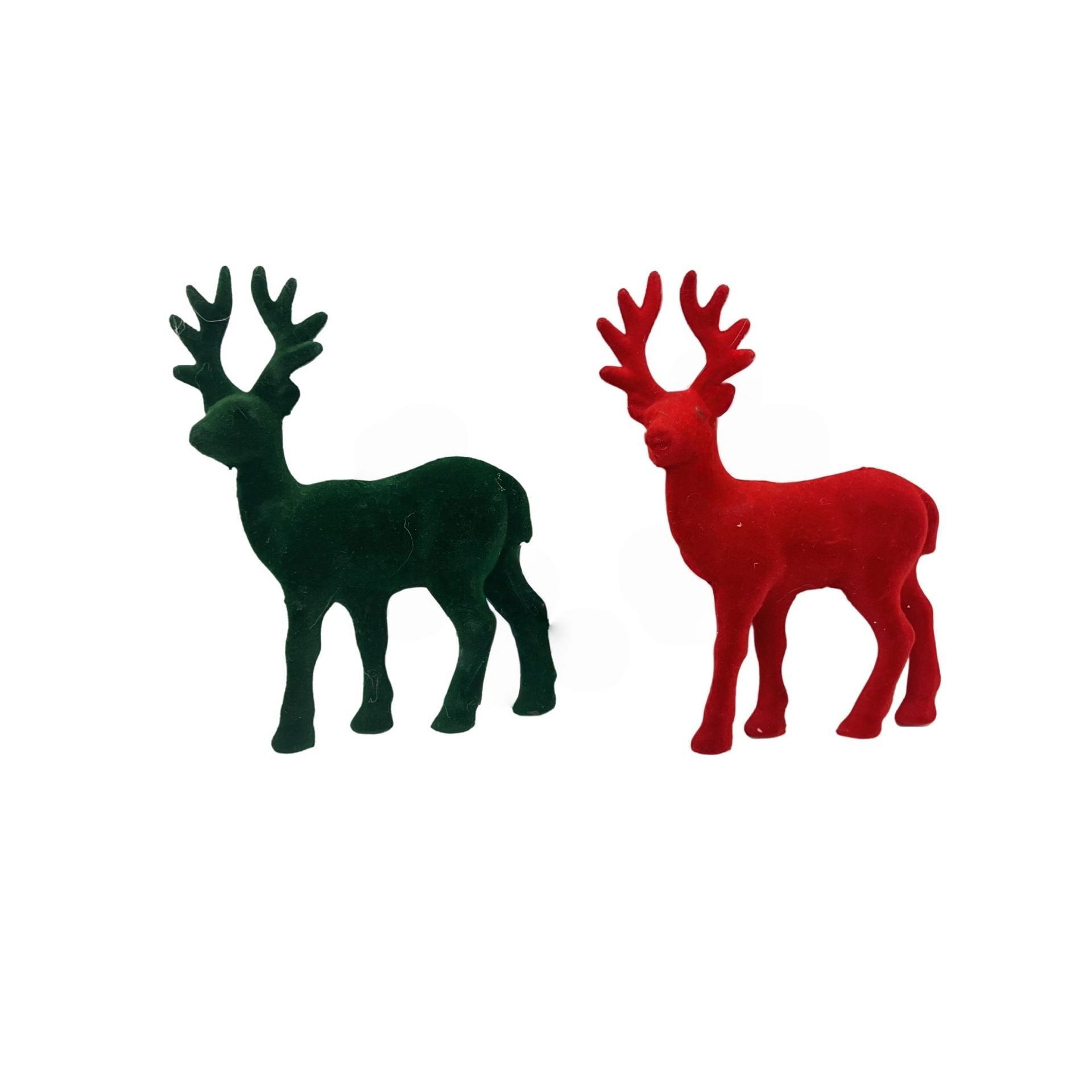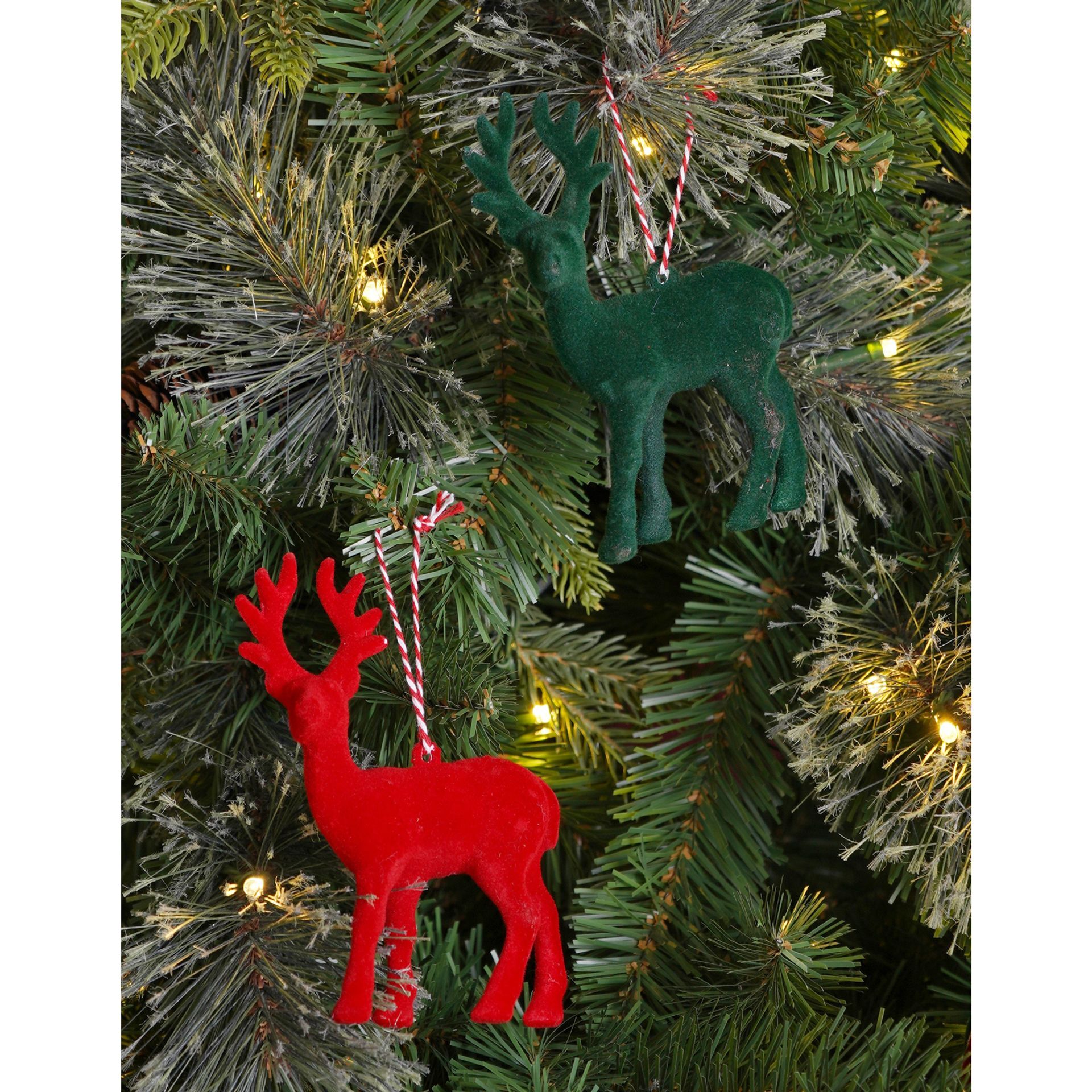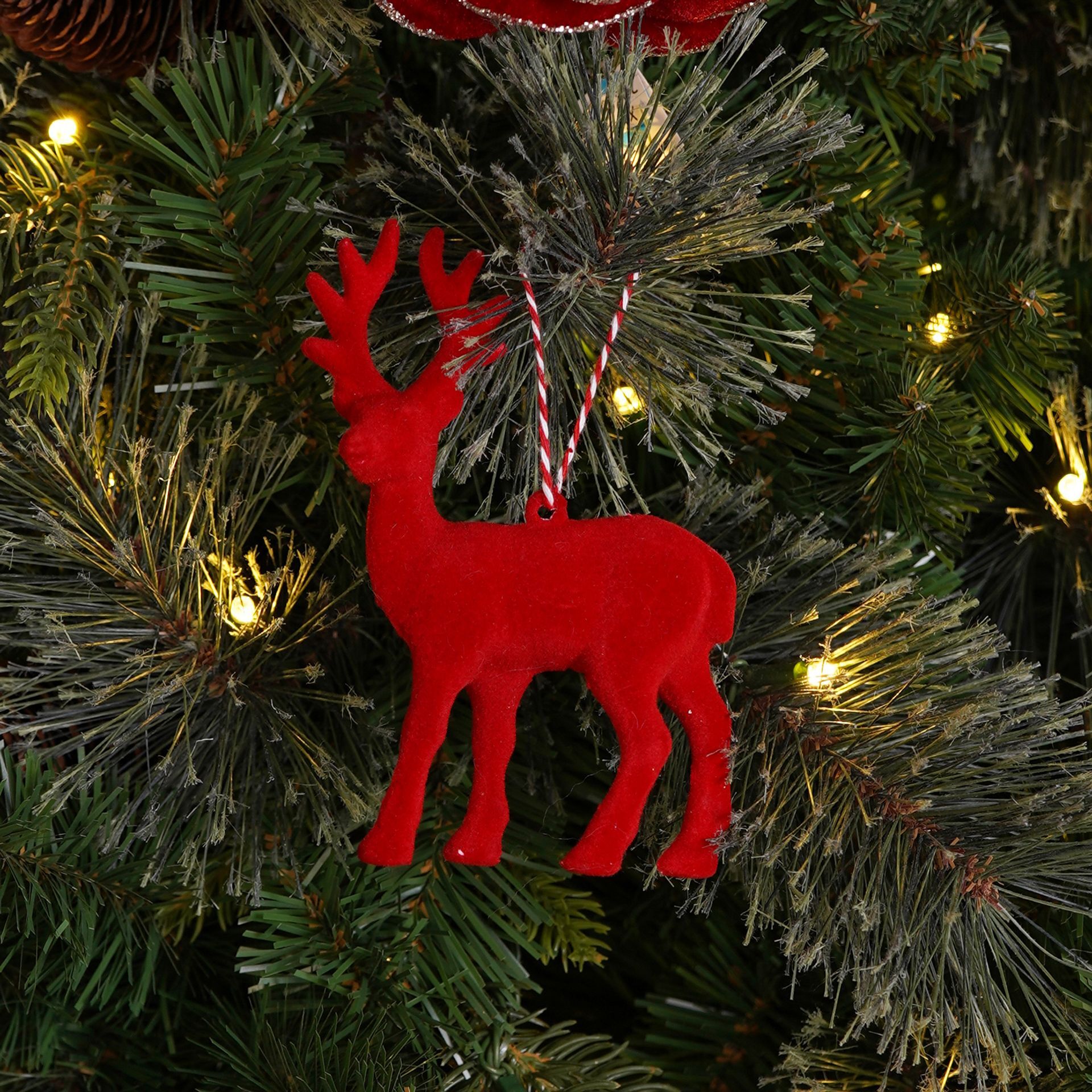 **ASTD MULTI 6** Red & Green Flocked Reindeer Hanging Tree Decoration