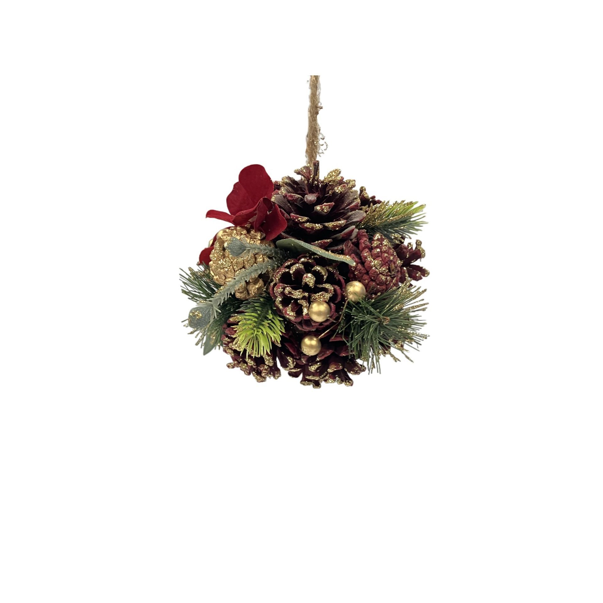 Luxury Hanging Ball with Red, Gold and Green Pinecones 15cm