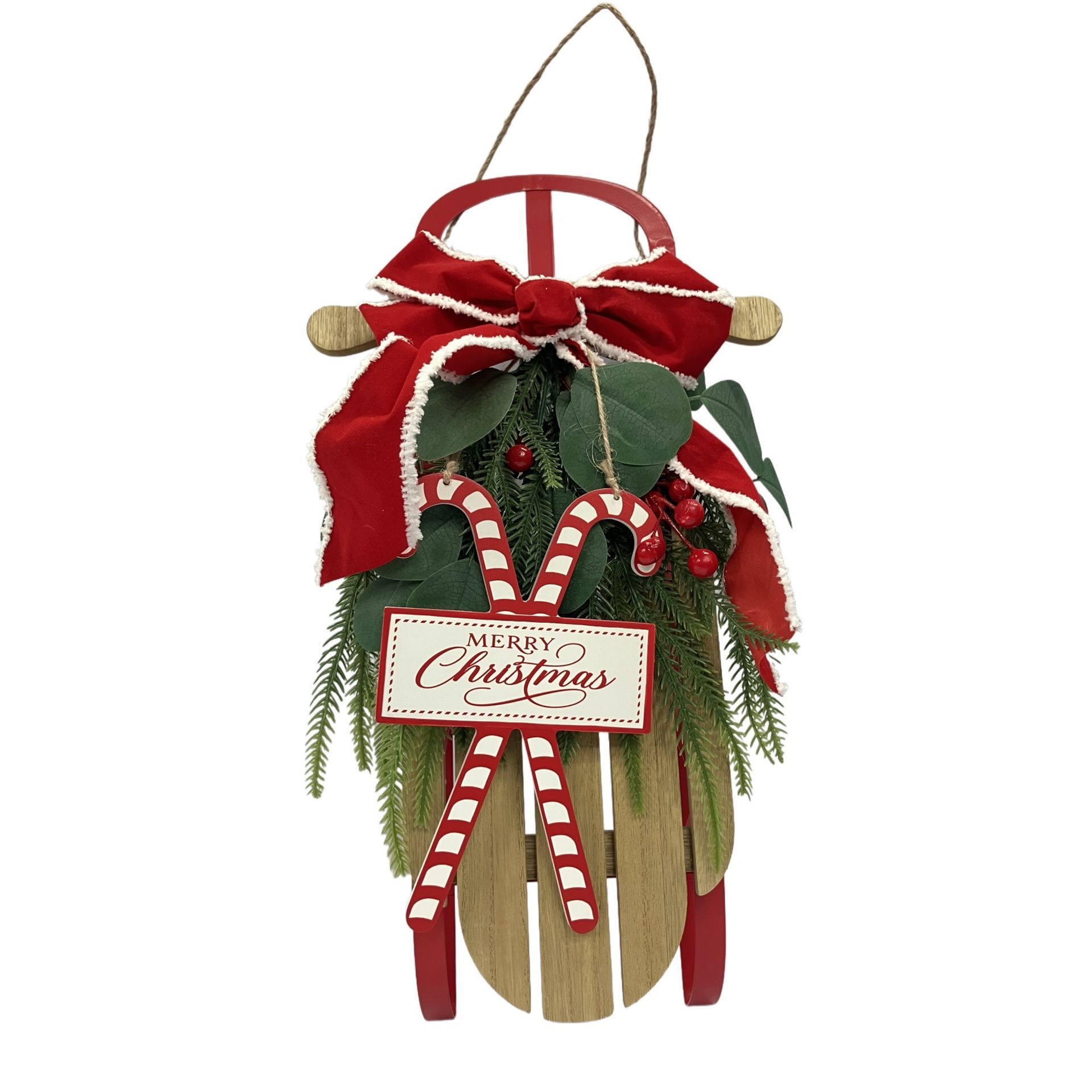 Metal and Wooden Christmas Wall Art Sleigh with Candy Canes 45cm - Merry Christmas