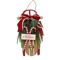 A festive Christmas decoration featuring a red-clad figure holding a sign that says "Merry Christmas", this piece combines metal and wood for a charming, textured finish. Candy cane details and gentle curves evoke the warmth of traditional holiday celebrations.