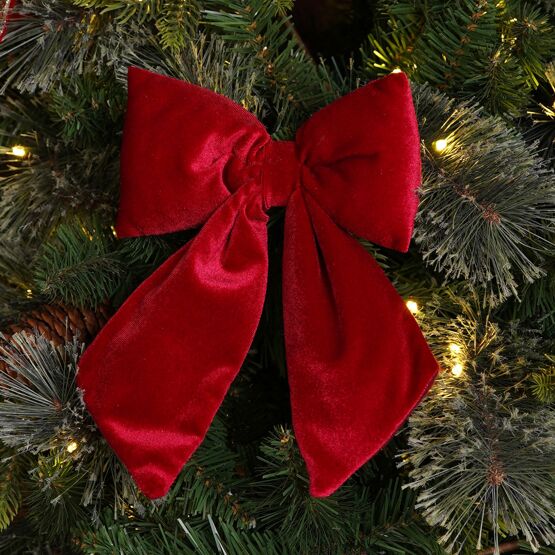 Our Regal Tidings Velvet Red Bow is a stunning festive accent, perfect for adding a regal touch to décor.