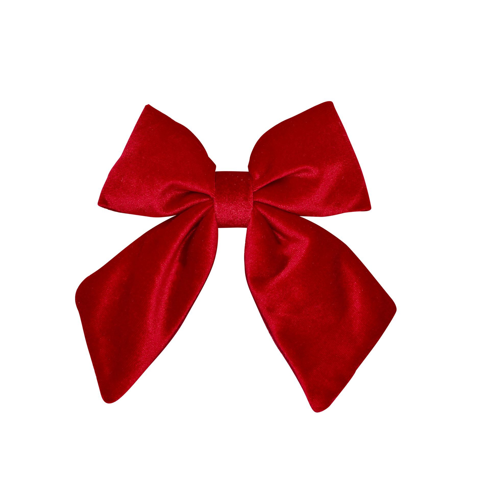 The plush red velvet bow, with versatile clip, is a statement piece to be displayed anywhere.