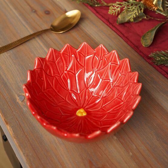 The Red Ceramic Poinsettia Bowl brings festive charm to seasonal tablescapes, making it an essential addition to your seasonal decor. This vibrant, red ceramic bowl features a textured, petal-like design that creates a striking centrepiece. Its sculpted form and glossy finish evoke the classic poinsettia, adding a touch of tradition to modern settings. Complete the look with more refined designs from the Regal Tidings collection, ensuring a cohesive and elegant seasonal presentation.