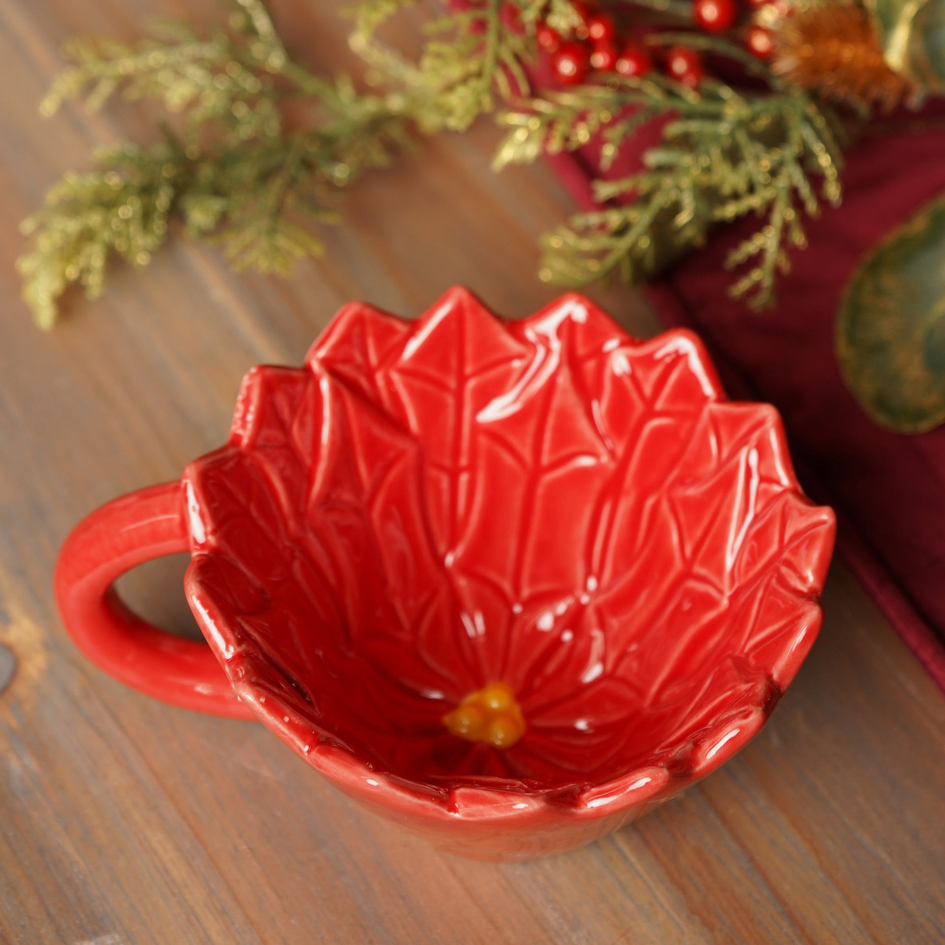 Red Ceramic Poinsettia Tea Cup