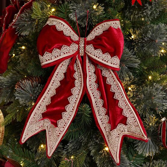Red Hanging Bow Tree Decoration brings a statement of festive elegance to any Christmas tree.