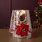 Regal Tidings Crackle Glass Pillar Candle Holder Poinsettia Design 20cm