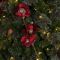The image depicts two deep red, velvety flowers with golden centres, each bloom crafted to evoke a sense of classic Christmas elegance. The rich colour and soft texture offer a sophisticated accent for wreaths, garlands, or vases.