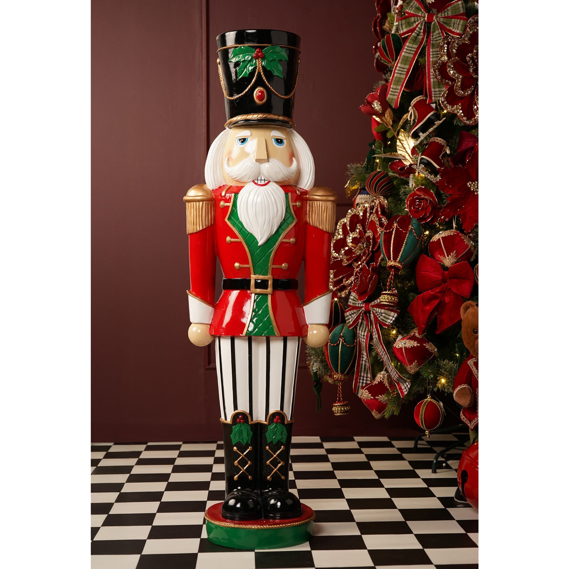 The Regal Tidings Large Christmas Nutcracker 119cm stands as a striking centrepiece in any festive setting.