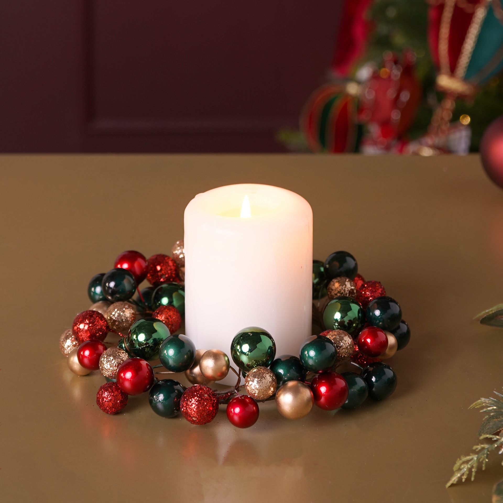 Regal Tidings Red, Green & Gold Ball Candle Surround